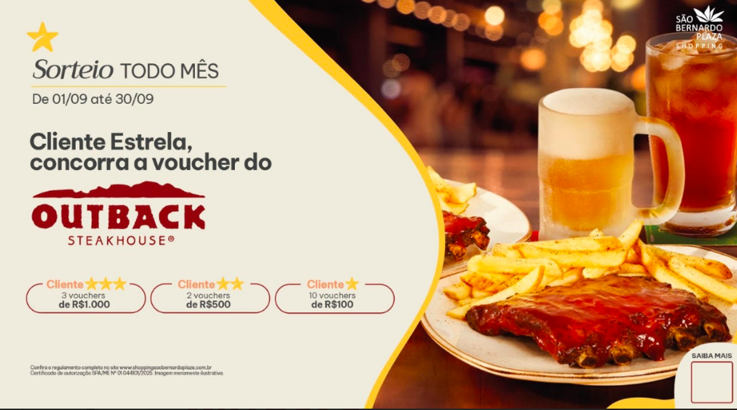 São Bernardo Plaza Shopping lança sorteio exclusivo de vouchers do Outback para Clientes Estrela
