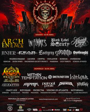 O Bangers Open Air 2026 tem line-up de peso em sua próxima edição que será realizada nos dias 25 e 26 de abril no Memorial da América Latina, em São Paulo (SP). Alguns dos primeiros nomes divulgados foram BLACK LABEL SOCIETY, PRIMAL FEAR, TANKARD, FEUERSCHWANZ, KORZUS, NEVERMORE, PROJECT46, WITHIN TEMPTATION e CRYPTA. Entre as atrações recém divulgadas, estão AMBUSH, KRISIUN, KILLSWITCH ENGAGE, JINJER, e o tão requisitado pelo público IN FLAMES. Também foram confirmadas as presenças de WINGER, FEAR FACTORY, ONSLAUGHT, EVERGREY, AMARANTHE, DIRKSCHNEIDER, LUCIFER, CRAZY LIXX, ROY KHAN, SEVEN SPIRES, VISIONS OF ATLANTIS, SILVER DUST, e SMITH/KOTZEN, de Adrian Smith (Iron Maiden) e Richie Kotzen.