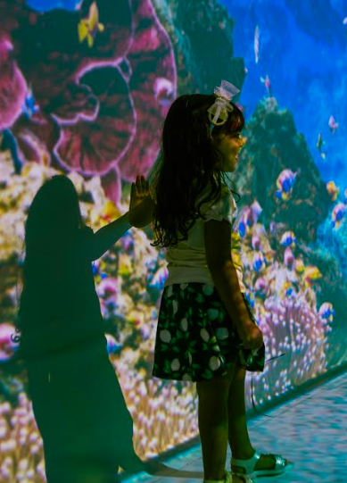 A experiência, voltada para todas as idades, promove um mergulho sensorial com o uso de luzes, sons e imagens em movimento, criando uma conexão profunda com a vida marinha. No “Oceano Vivo”, o mar se transforma em uma imensa tela viva, onde desfilam baleias, tubarões, águas-vivas, cardumes, corais e algas num verdadeiro balé visual.