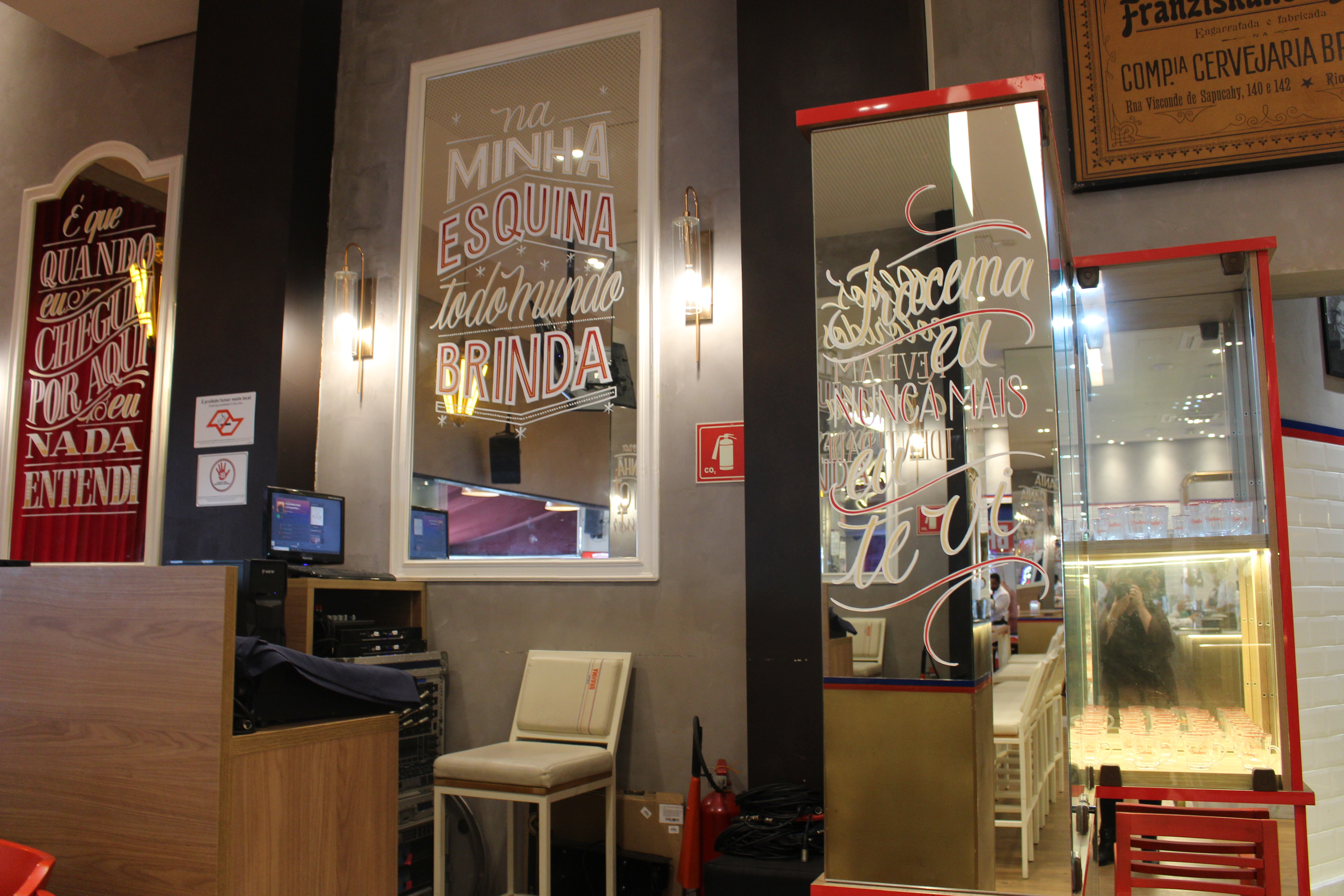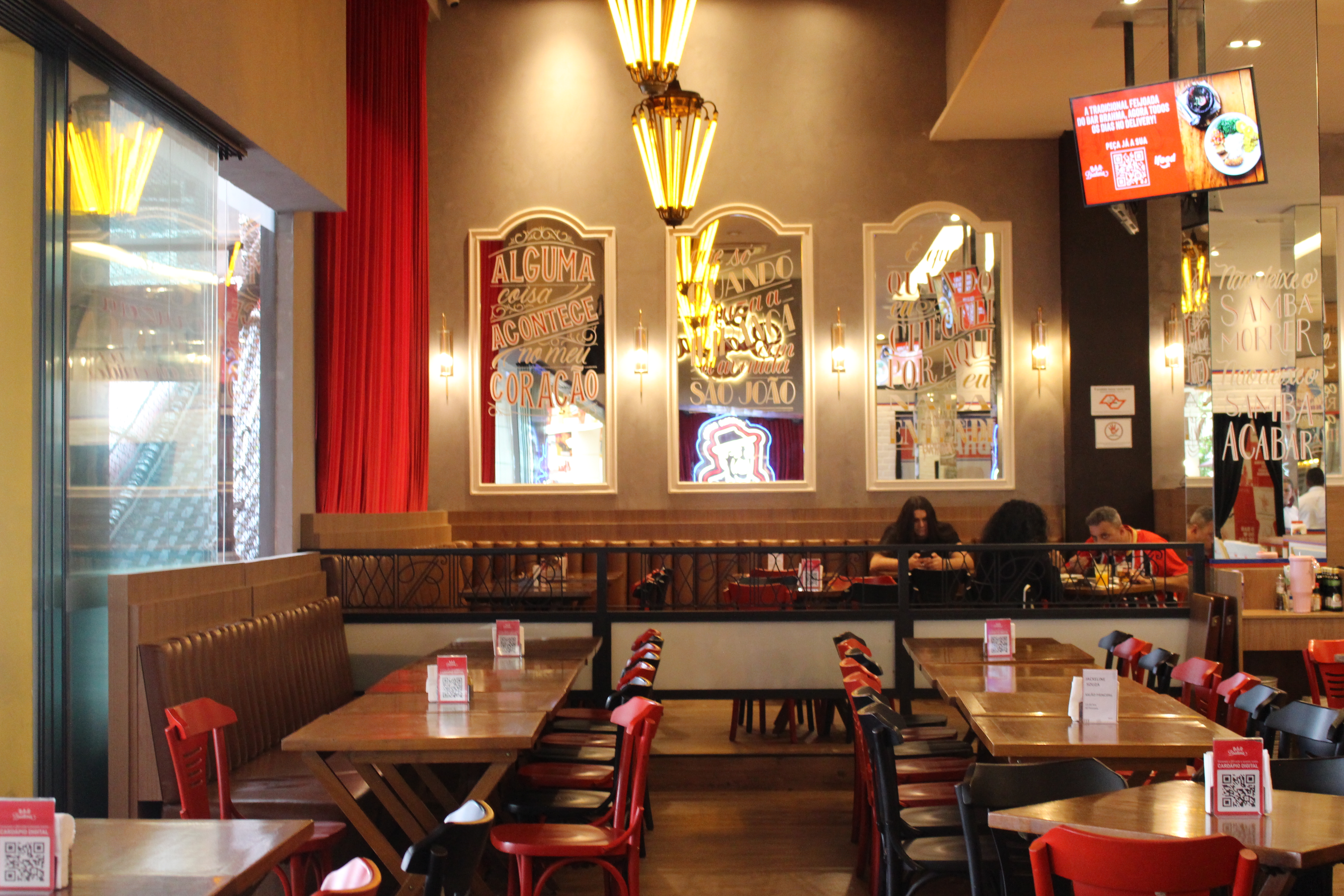 Logo de cara, o ambiente impressiona. O Bar Brahma da Granja é uma unidade que completou um ano recentemente e, sinceramente, dá pra ver o capricho em cada detalhe. A casa é linda, espaçosa e tem dois acessos: um pela entrada principal e outro com elevador, o que facilita o acesso pra quem prefere evitar escadas. A arquitetura é moderna, mas mantém aquele toque acolhedor de bar brasileiro clássico — mesas bem distribuídas, decoração charmosa e uma iluminação que convida a ficar horas por ali.