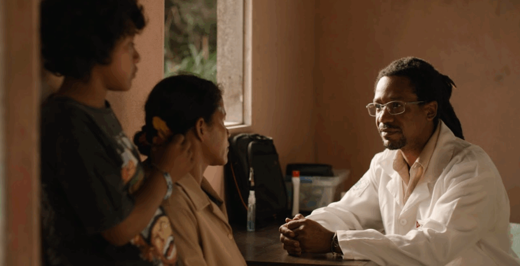 Akin é um protagonista atípico. Por ser estrangeiro, pela pressão política da ascensão bolsonarista e pelos dois amores que surgem em seu caminho Érica e Sérgio, ele teria todos os elementos para se tornar um herói trágico, daqueles movidos por paixões intensas, conflitos ideológicos e escolhas dilacerantes. Mas Bernard Lessa opta por outro olhar. O Akin que vemos na tela é, ao mesmo tempo, carinhoso e estranho ao próprio destino. Há algo de suave e passivo em sua presença. Ele nunca parece sentir de fato a saudade de Cuba, nem demonstra pesar diante do retorno iminente. Atua como médico com entrega visível, mas sem grande fervor como se fosse alguém que cuida não por vocação, mas porque é assim que ele caminha pelo mundo. Fiquei impressionada com a calma e paz transmitida pelo personagem.