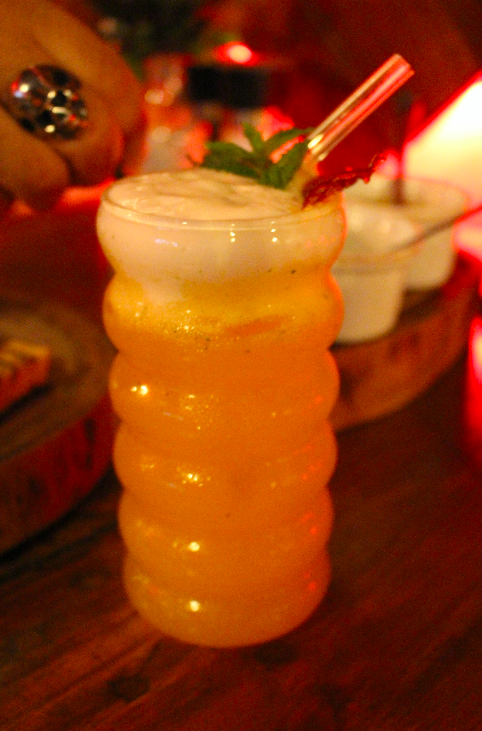 Rum Havana, limão siciliano, maracujá, hortelã, citrus, espuma de gengibre e caramelo de limão siciliano.