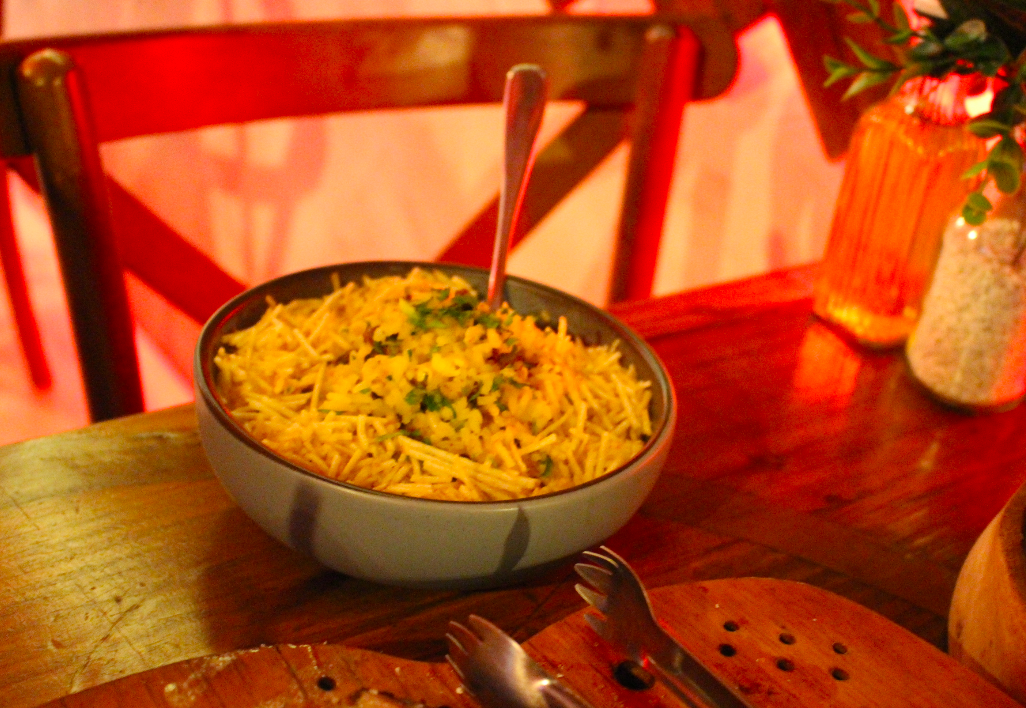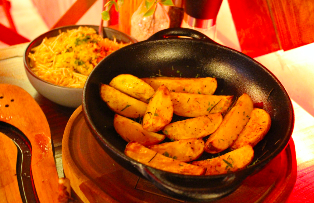 O arroz biro-biro chega solto, bem temperado, com bacon bovino equilibrado e batata palha crocante, estruturado sem pesar. A batata rústica é assada corretamente, crocante por fora, macia por dentro, com alho e ervas bem distribuídos acompanha sem competir.