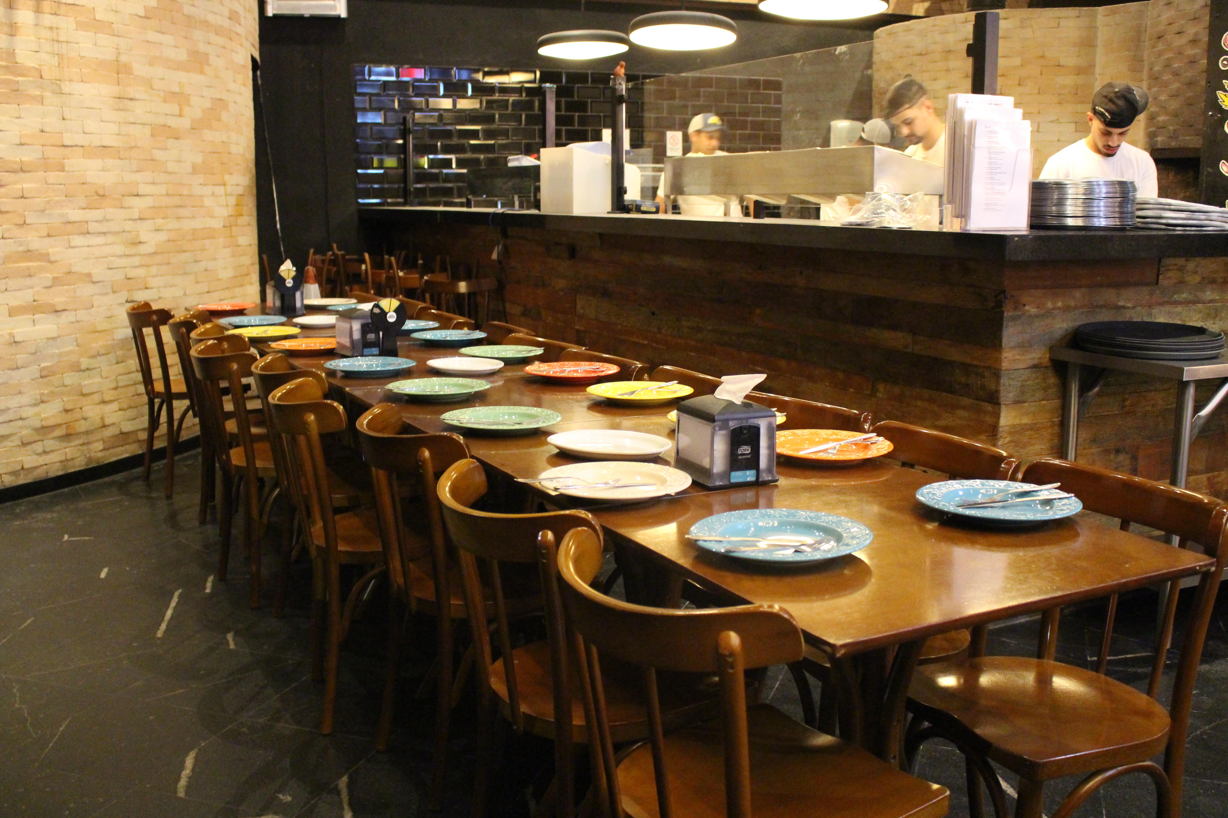 O carro-chefe da casa é o rodízio de mini pizzas de longa fermentação, com massa leve, bem feita e variedade pra agradar qualquer pessoa. São 30 sabores salgados e 16 doces, todos passando com frequência e sempre quentinhos.