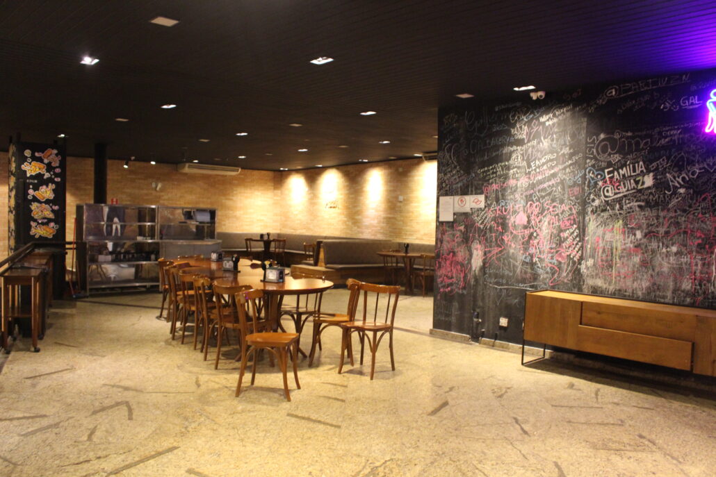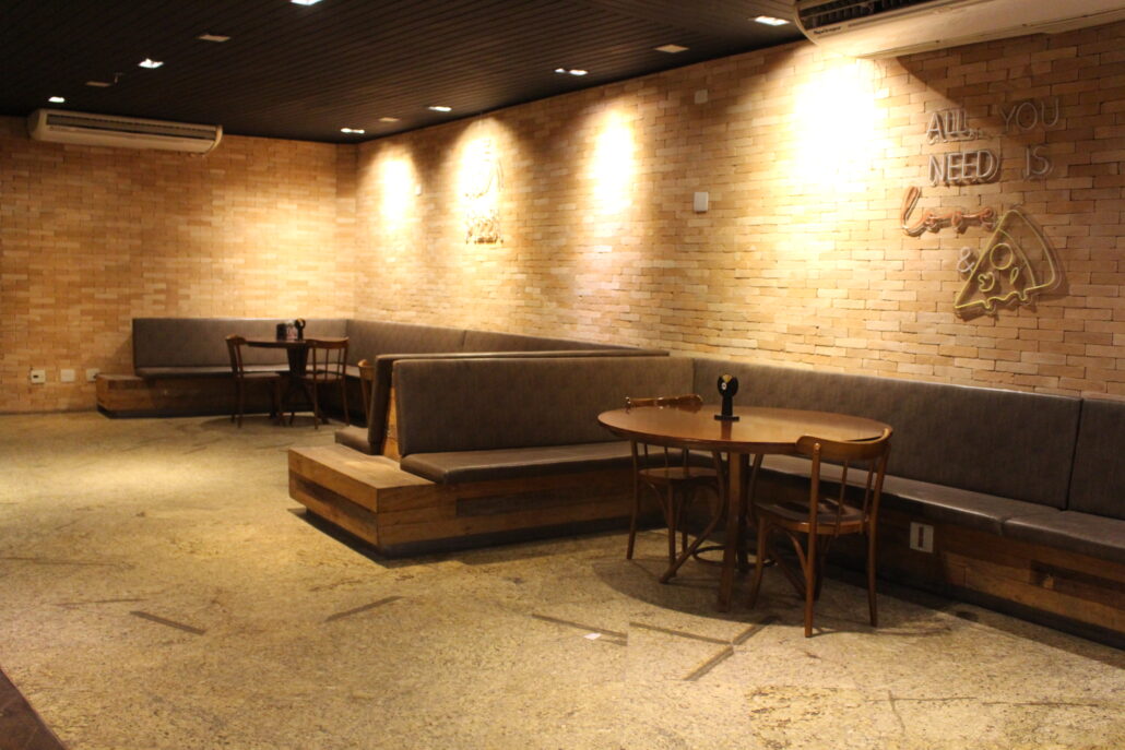 O ambiente interno é acolhedor, com decoração leve, ideal para aniversários, encontros em grupo e jantares a dois. A parte térrea é acessível para cadeirantes, perfeita também para idosos — inclusive, vi muitos por lá e notei como o fluxo funciona bem para quem precisa de mobilidade mais tranquila.