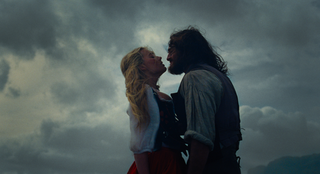 As interpretações elevam o conjunto: Elordi impõe uma presença física dominante a Heathcliff, com blocking corporal que reforça sua alteridade selvagem; Robbie, em Catherine, forja uma química magnética via close-ups intensos e olhares carregados de subtexto freudiano.
