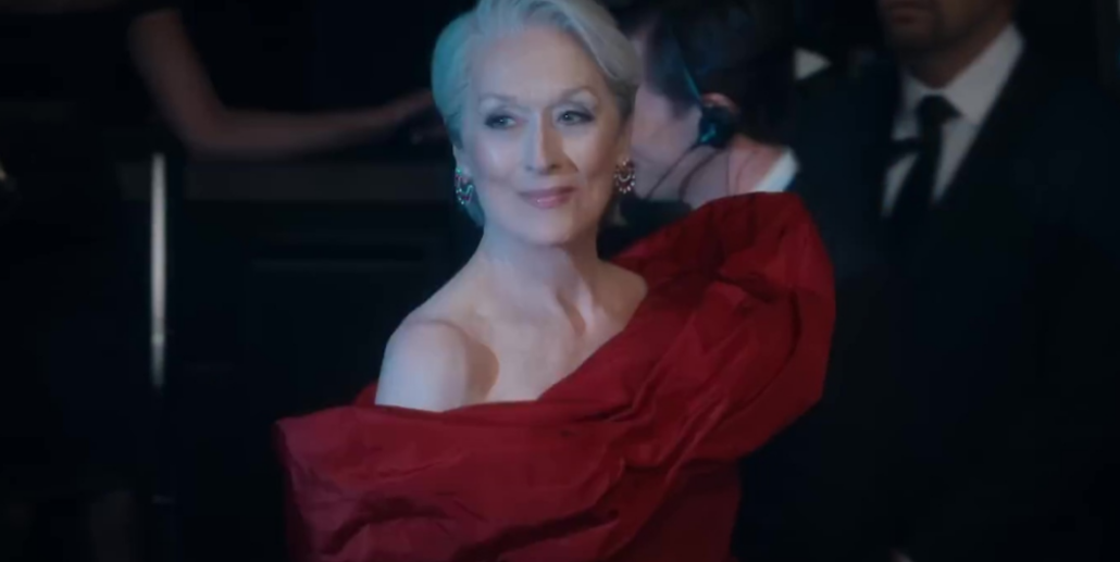 E esse é um dos pontos mais interessantes e também mais controversos do filme. Há uma tentativa clara de humanizar Miranda Priestley. Embora ela ainda mantenha traços do seu comportamento frio e respostas afiadas, existe um esforço para torná-la mais contida, mais “adequada”. E isso, particularmente, incomoda um pouco. Parte da força da personagem sempre esteve justamente no seu tom ácido, na sua postura firme e até desconfortável. Ao suavizar isso em nome de um comportamento mais politicamente correto, o filme acaba enfraquecendo um pouco uma das suas características mais marcantes. Em diversos momentos, fica a sensação quase compartilhada com a própria Andy de que algo está sendo segurado ali. Ainda assim, a presença de Miranda continua imponente. E muito disso se deve à performance impecável de Meryl Streep, que entrega uma personagem cheia de camadas, mesmo dentro dessas novas limitações.