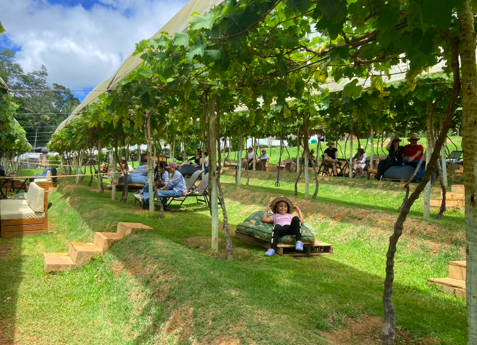 Quando a gente fala da Vindima da Vila Don Patto, não dá pra resumir em uma atividade ou em um prato. É um conjunto de sensações que vão se somando ao longo do dia. Começa pela estrutura, que é impecável: tudo organizado, sinalizado, com espaços amplos, estacionamento fácil, acessibilidade pensada de verdade e aquela tranquilidade de saber que você pode circular, sentar, observar e aproveitar sem pressa. A Vila tem espaço, tem verde, tem beleza e tem conforto — e isso muda tudo na experiência.