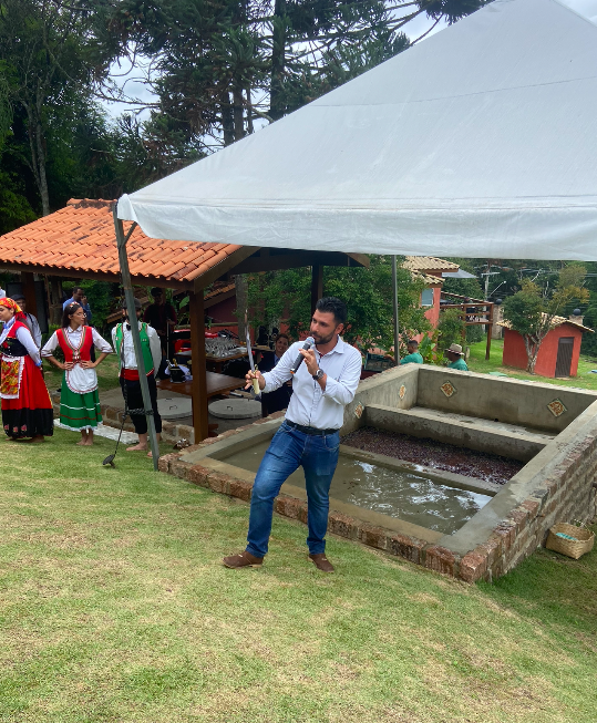 Mas o que realmente transforma essa experiência em algo especial é o fator humano. O enólogo Giovane é o grande símbolo disso. Ele não está ali só para explicar sobre uvas e vinhos. Ele cria vínculo. Ele pergunta seu nome, te chama pelo nome, quer saber de onde você veio, escuta histórias. Você deixa de ser “mais um” e passa a ser alguém vivendo aquele momento. Ver pessoas viajando de longe, se hospedando na Rota do Vinho só para participar da Vindima, mostra o quanto essa troca é poderosa.