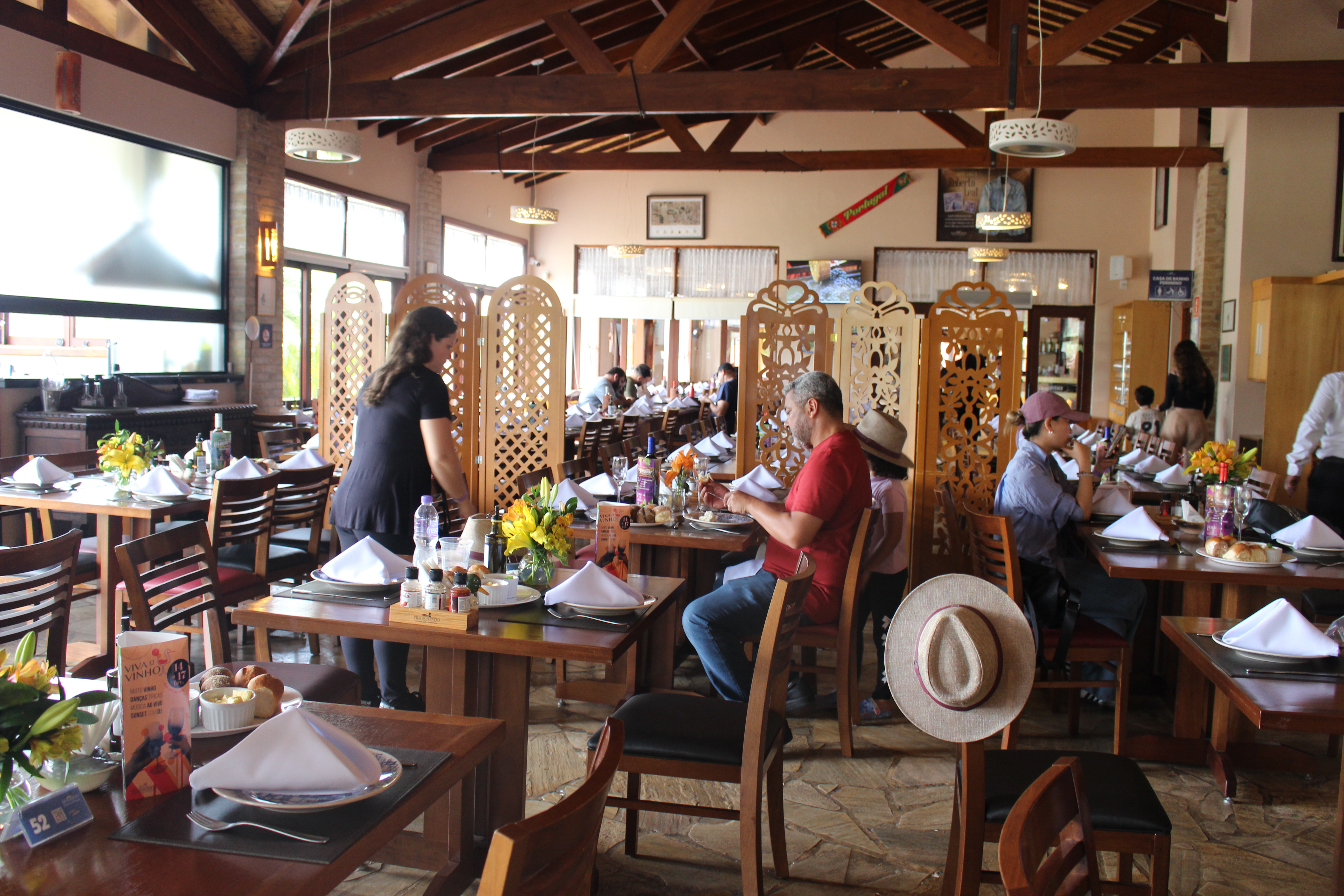 Depois de uma manhã inteira de colheita, pisa da uva, música e brindes, o almoço chega como um verdadeiro abraço. Somos conduzidos ao Restaurante Português da Vila Don Patto, comandado pelo chef José Miranda, onde tudo é pensado para acolher — do ambiente ao último detalhe do prato.