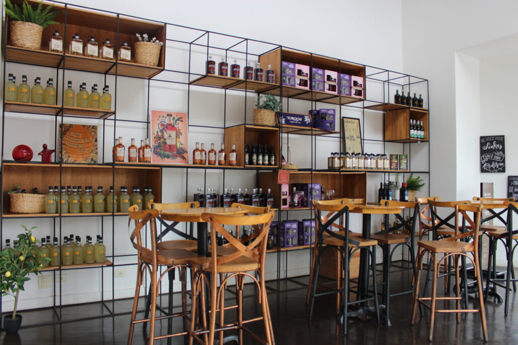 Tudo pode ser degustado e comprado na loja da fábrica, que oferece também taças, kits-presente e acessórios para quem ama mixologia.