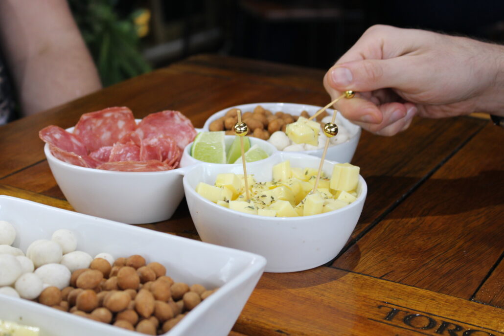 A Tábua de frios é simples e deliciosa, a tábua é uma ótima pedida pra dividir enquanto prova os drinks. Vem bem servida, com salame, queijo muçarela, amendoim japonês e o tradicional amendoim ovinho, que é uma verdadeira nostalgia de boteco. A combinação é clássica e harmoniza bem com todos os drinks da casa.