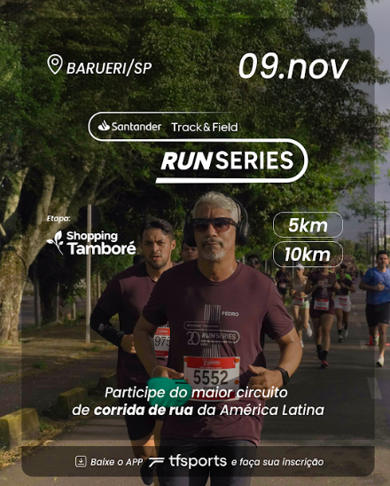 Mais informações sobre a etapa do Shopping Tamboré, podem ser consultadas no site oficial: https://www.tfsports.com.br/run-series/shopping-tambore-2025/. O trajeto completo da corrida está disponível no aplicativo TFSports (Android e iOS), onde também devem ser feitas as inscrições.