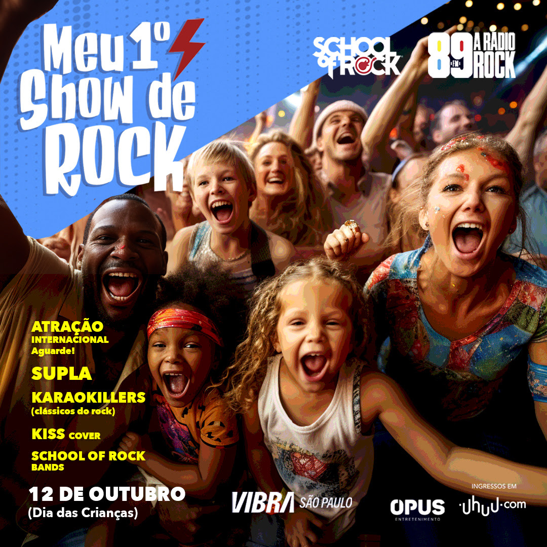 Meu primeiro show de Rock! acontece na Vibra São Paulo, no dia 12 de outubro, a partir de 15h. Os ingressos já estão à venda pelo site da Uhuu.com e bilheteria da casa, e custam a partir de R$60 (meia-entrada). As pessoas também contam com pacotes família. Mais informações no serviço deste press release.